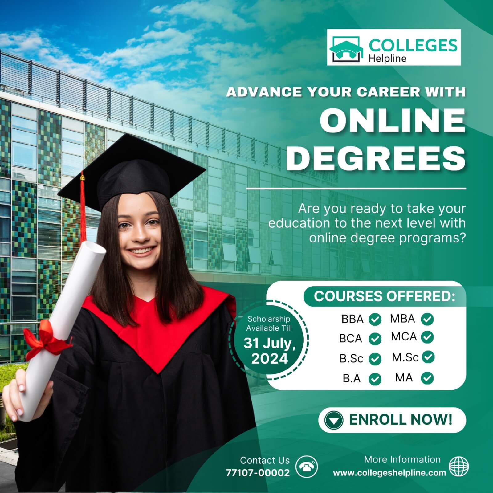 CollegesHelpline gives you unbiased opinion of the best career option for you and what are best Universities suitable for your career growth. Call us to see how we shape careers.